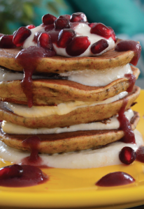 - Se asamblează pe o farfurie clătilele, crema, smoothie-ul de fructe de pădure și